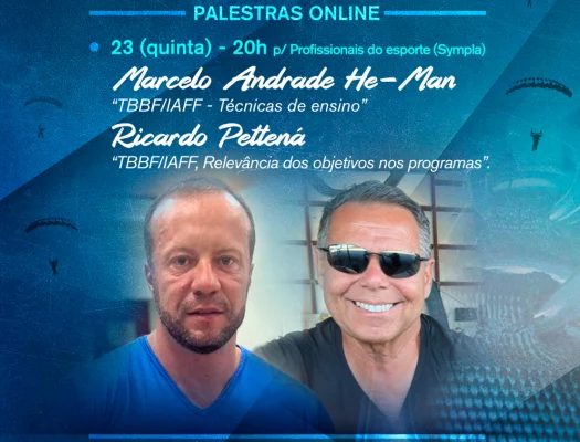 SymplaSemana do Paraquedista - INSCRIÇÃO SYMPLA: https://www.sympla.com.br/evento-online/simposio-bienal-de-seguranca-cbpq-2025/3164841 DIA #01: Dois grandes temas PARA PROFISSIONAIS DO ESPORTE Kid e Cotô: "Os desafios de um Load Organizer" + Gustavo Ferragut: "Atualizações no programa Tandem" Ciclo de palestras online da CBPq. SEMANA DO PARAQUEDISTA e SIMPÓSIO DE SEGURANÇA 2026: dias 21, 22 e 23 de outubro, sempre às